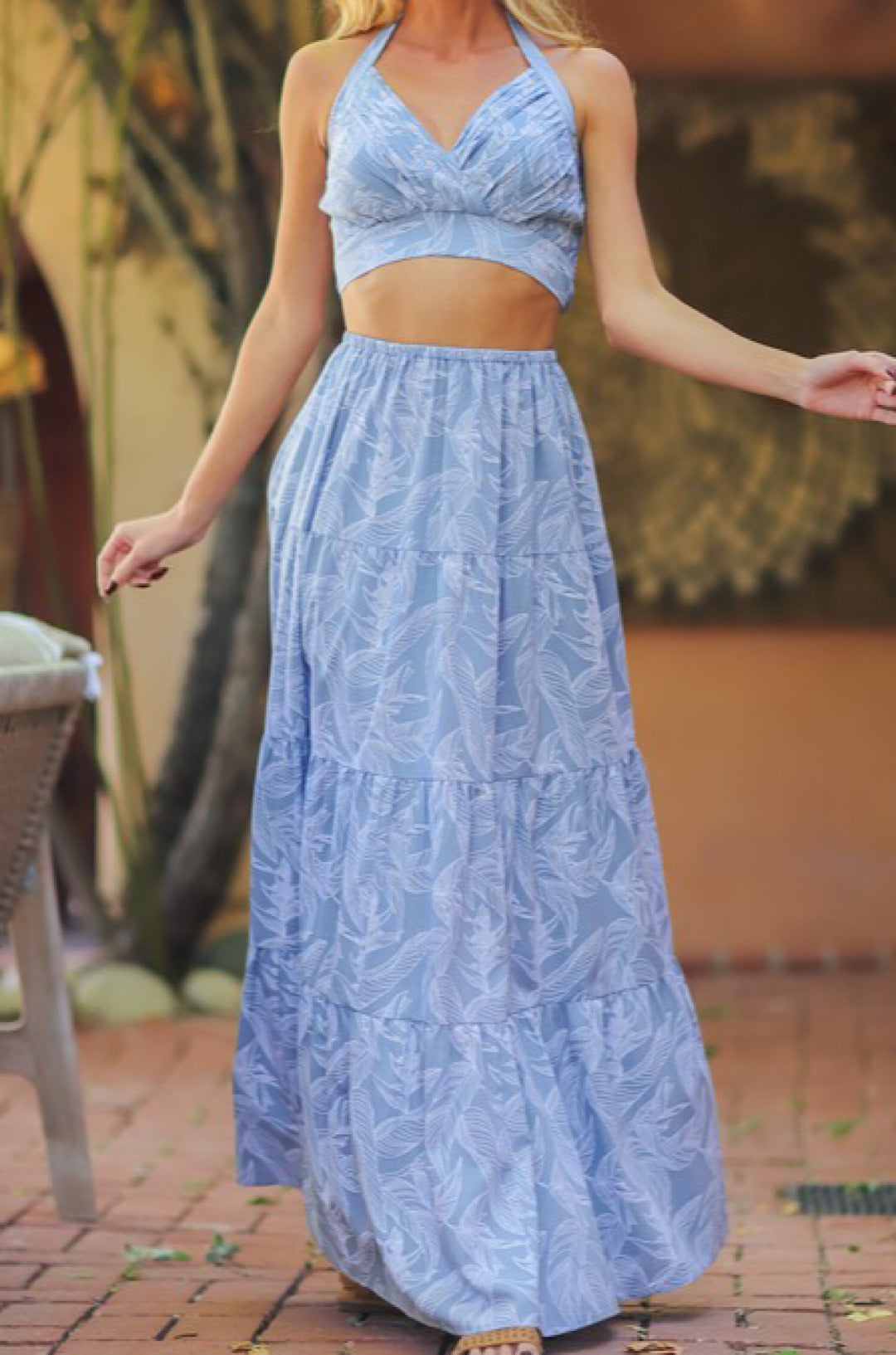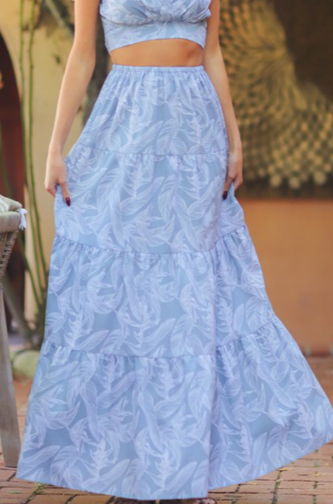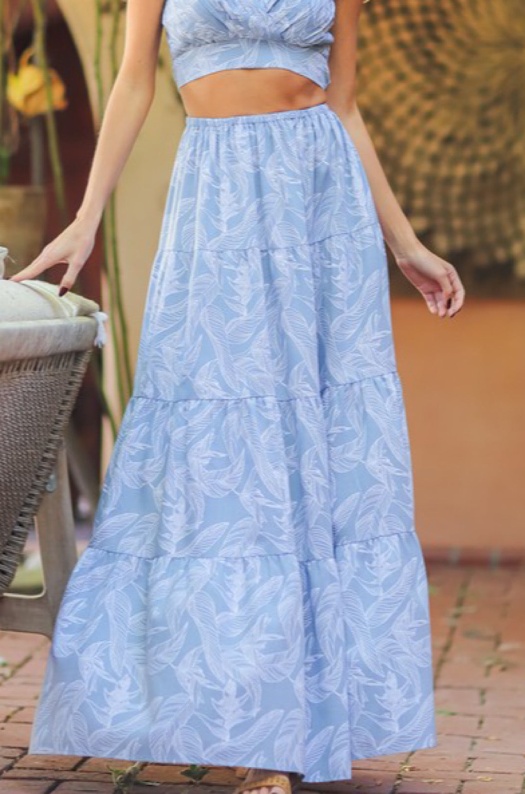 Elevate your summer style with the flowing elegance of this high-waisted tiered maxi skirt. The flattering high-waisted silhouette cinches your waist and creates a long and lean line, showcasing your figure in all the right places, this skirt offers both comfort and effortless style. Dress it up with wedges  for a special occasion, or keep it casual with sandals for a breezy summer day. This versatile piece looks stunning on its own or paired with our Briana Pleated Chest Halter Top (sold separately) for a complete and romantic summer outfit.