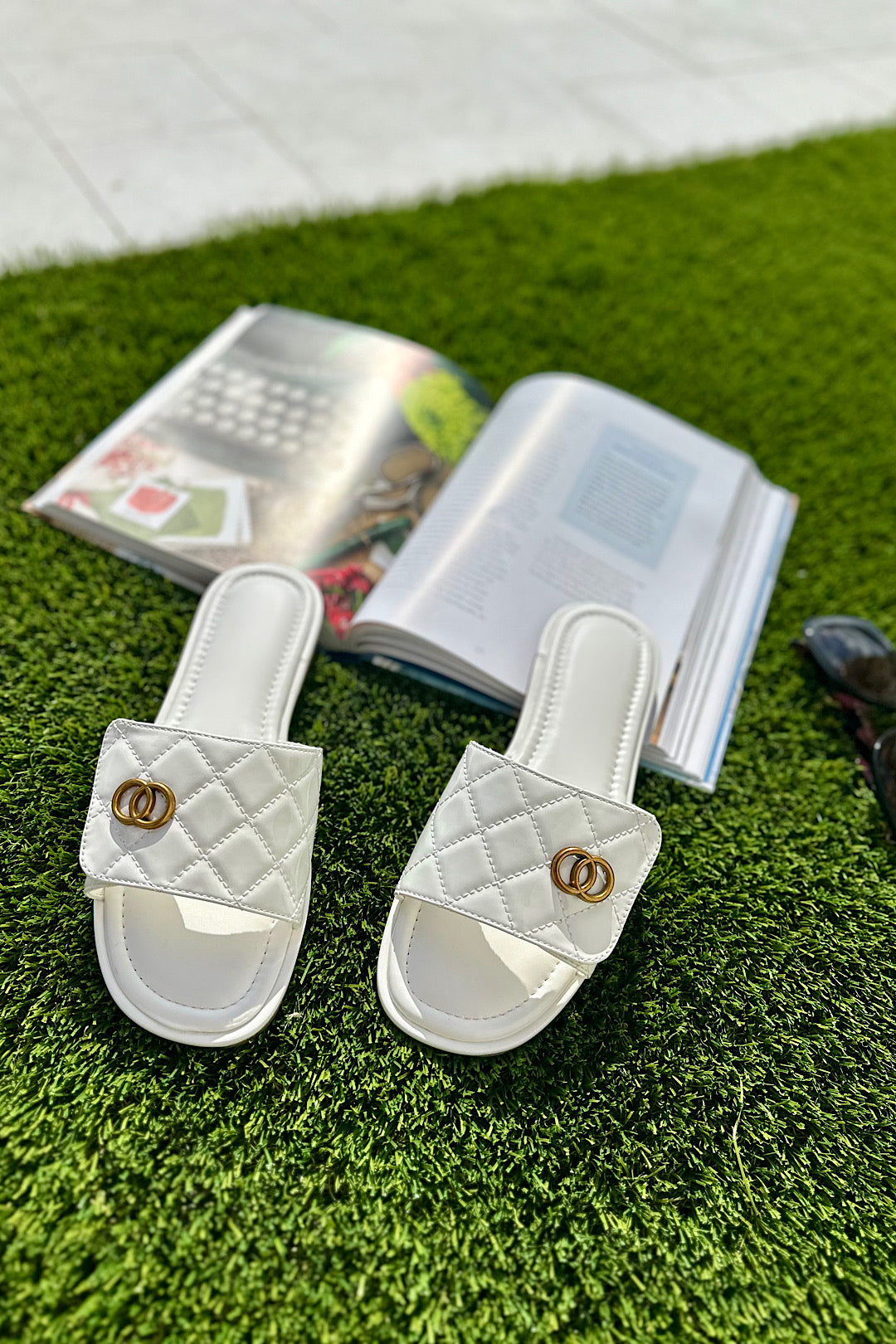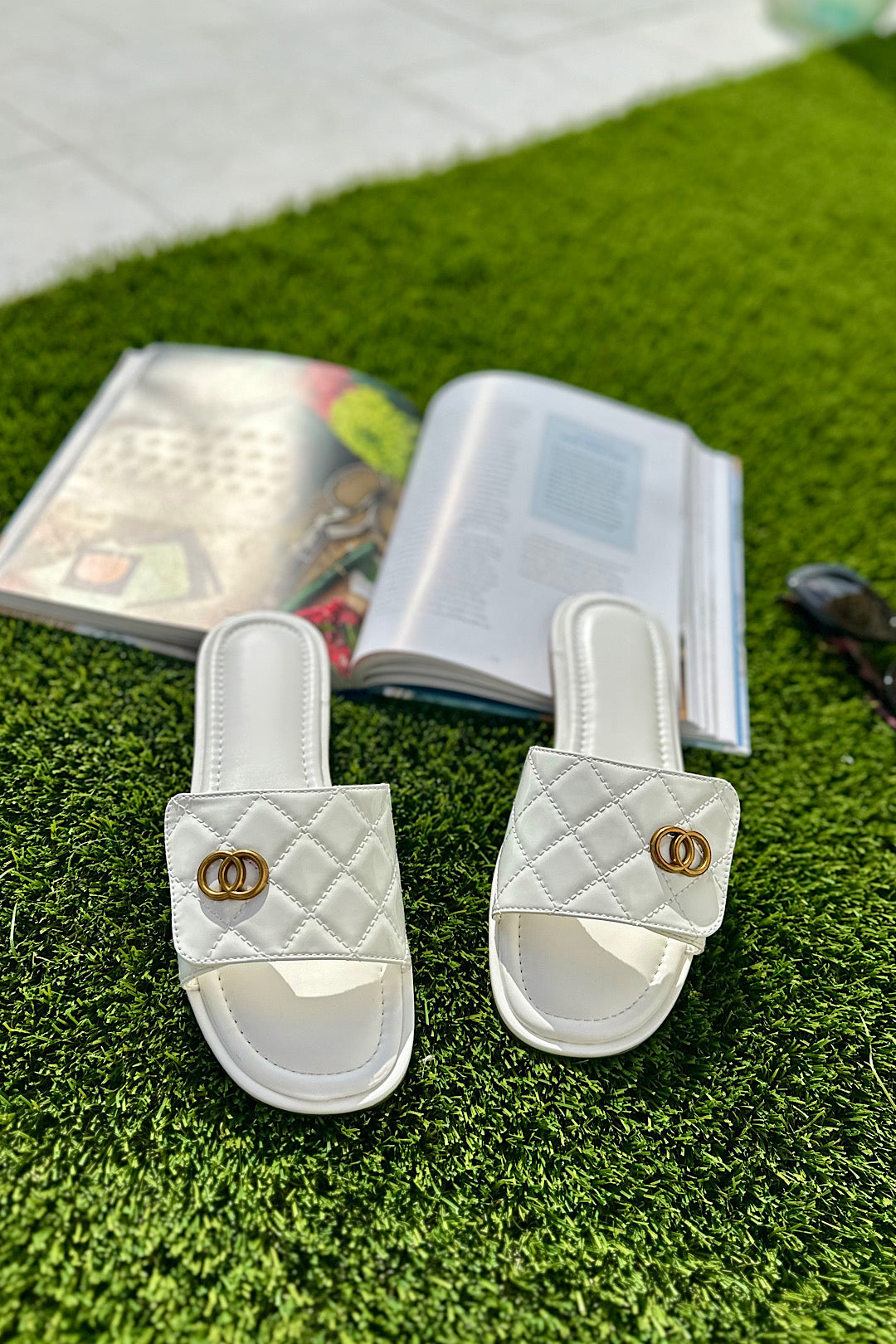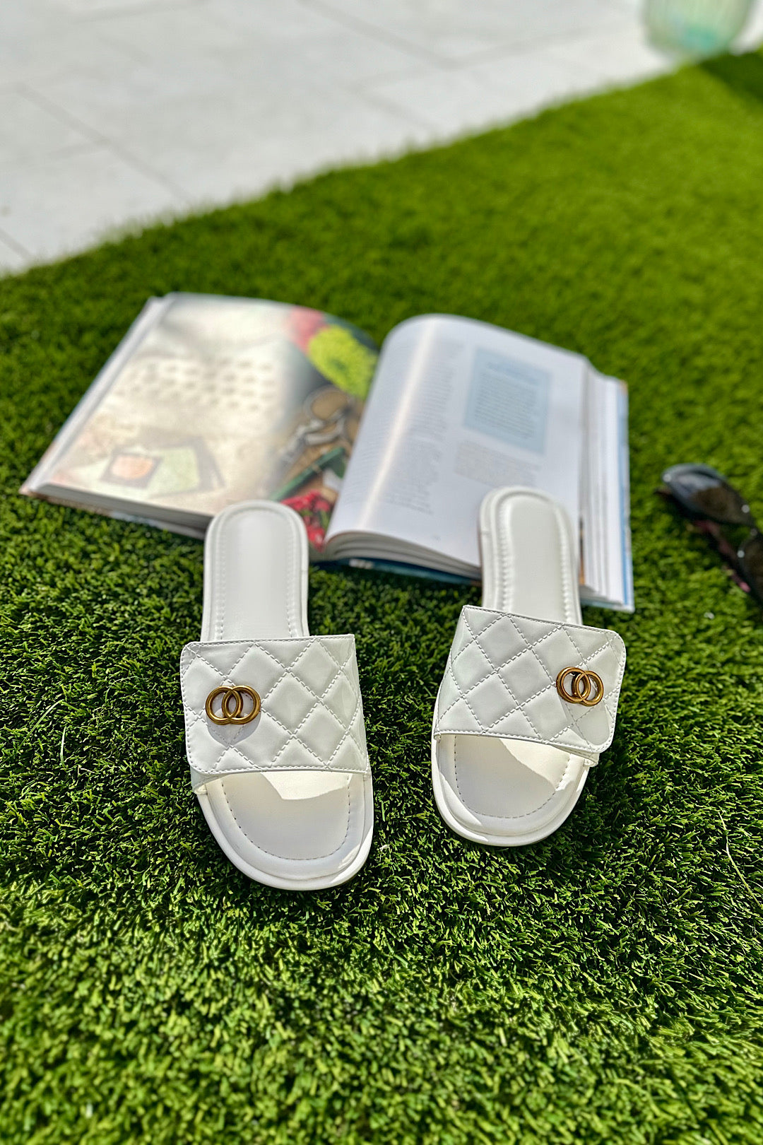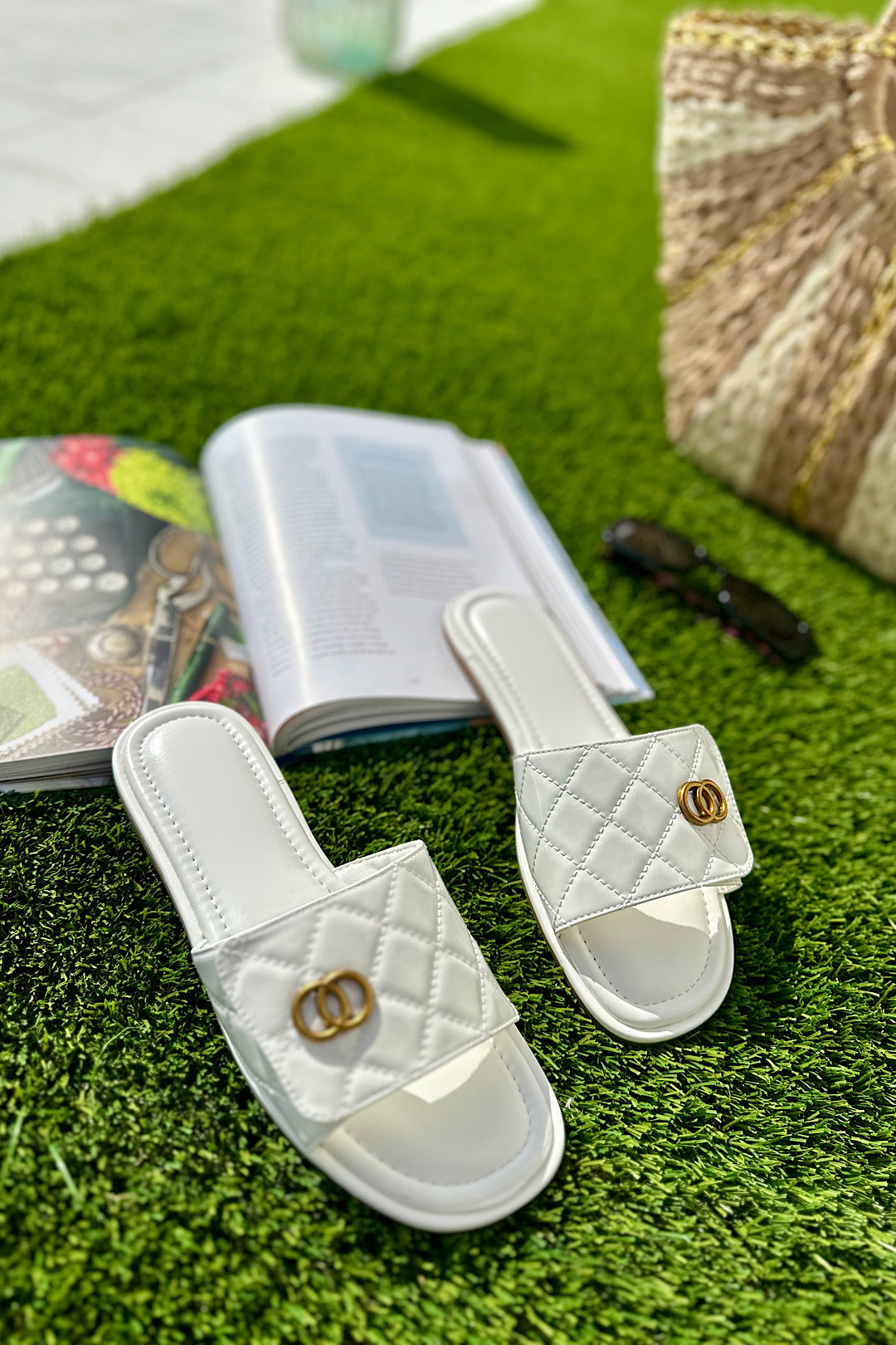 Find effortless comfort and style with these quilted toe band slides. Featuring a soft and supportive footbed, these vegan leather sandals are perfect for everyday wear. The square toe and stylish quilted design add a touch of modern elegance.