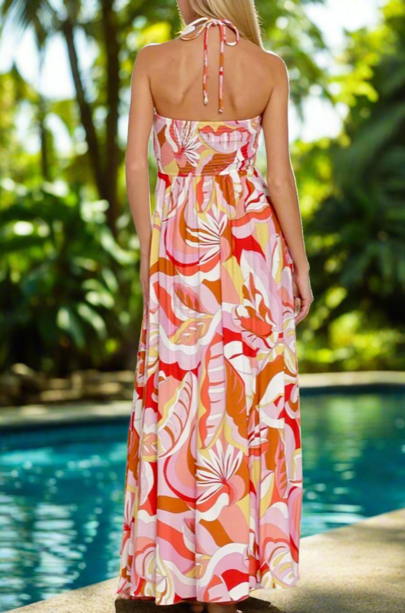 Turn heads and soak up the sun in the stunning Smocked Maxi Dress. This breezy essential is your perfect warm-weather companion. The comfortable smocked bodice flatters your figure and adjusts to your curves, while the chic tube neckline adds a touch of sophisticated allure. The playful neck tie-back detail lets you customize the fit for maximum comfort, and the flowy, ankle-grazing skirt keeps you cool on even the hottest days. Crafted from a lightweight, breathable fabric 100% Rayon, this dress is ideal for effortless style that transitions seamlessly from day to night. Pair it with sandals for a relaxed daytime look, or dress it up with heels and statement jewelry for a touch of evening glamour.