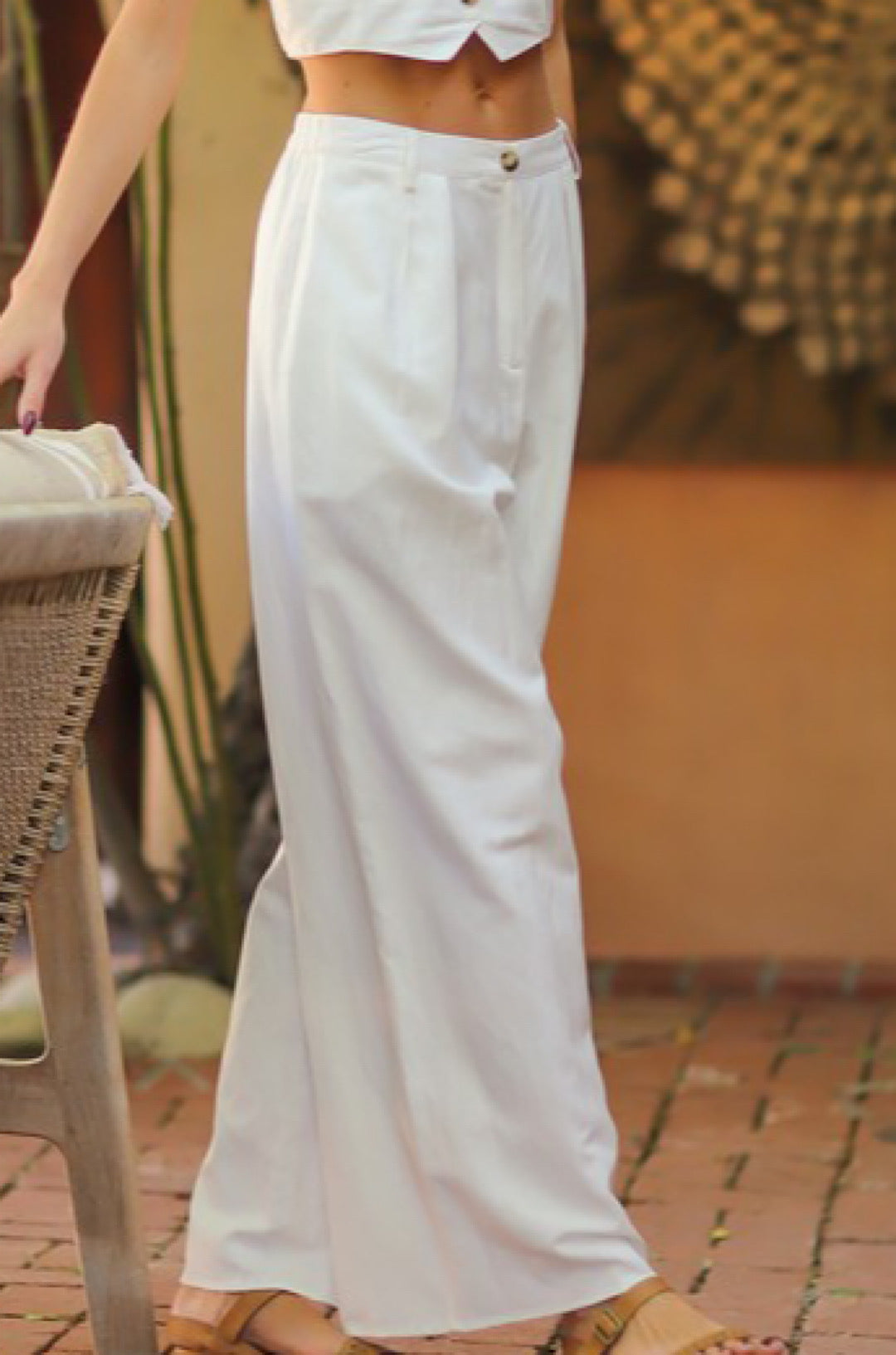 Elevate your everyday style with our breezy wide-leg pants, featuring a flattering high waist for a cinched silhouette. The convenient front zipper and two deep front pockets add practicality to their effortless style. Crafted from a breathable blend of 50% rayon and 30% linen, these pants drape beautifully and offer ultimate comfort perfect for those warm summer days. The 20% cotton adds a touch of structure for a polished look. Dress them up with heels for a night out or keep it casual with sandals (Pair them with Eloisa tube Vest) These versatile pants are a must-have in any wardrobe. Shop now and elevate your everyday!