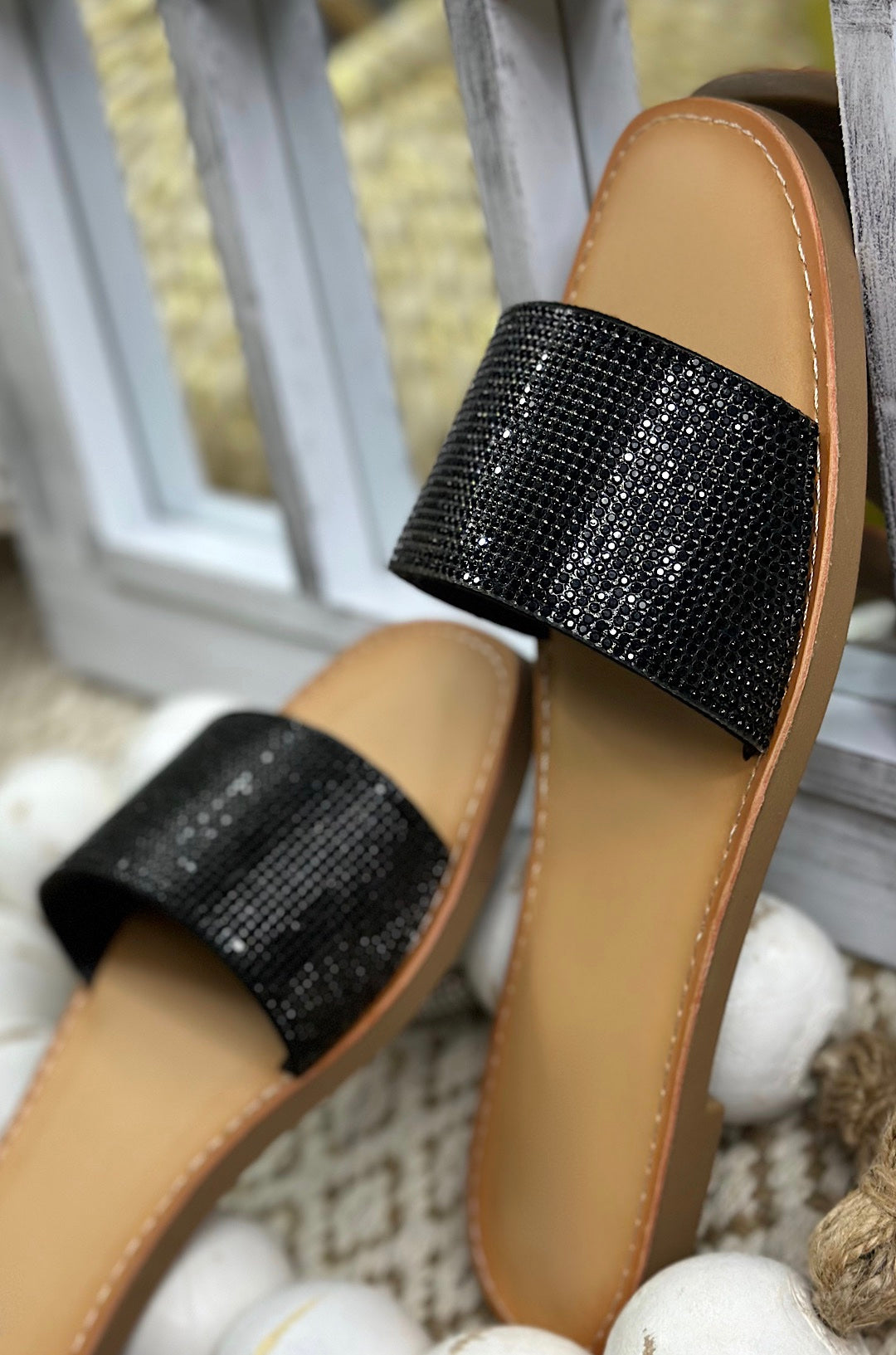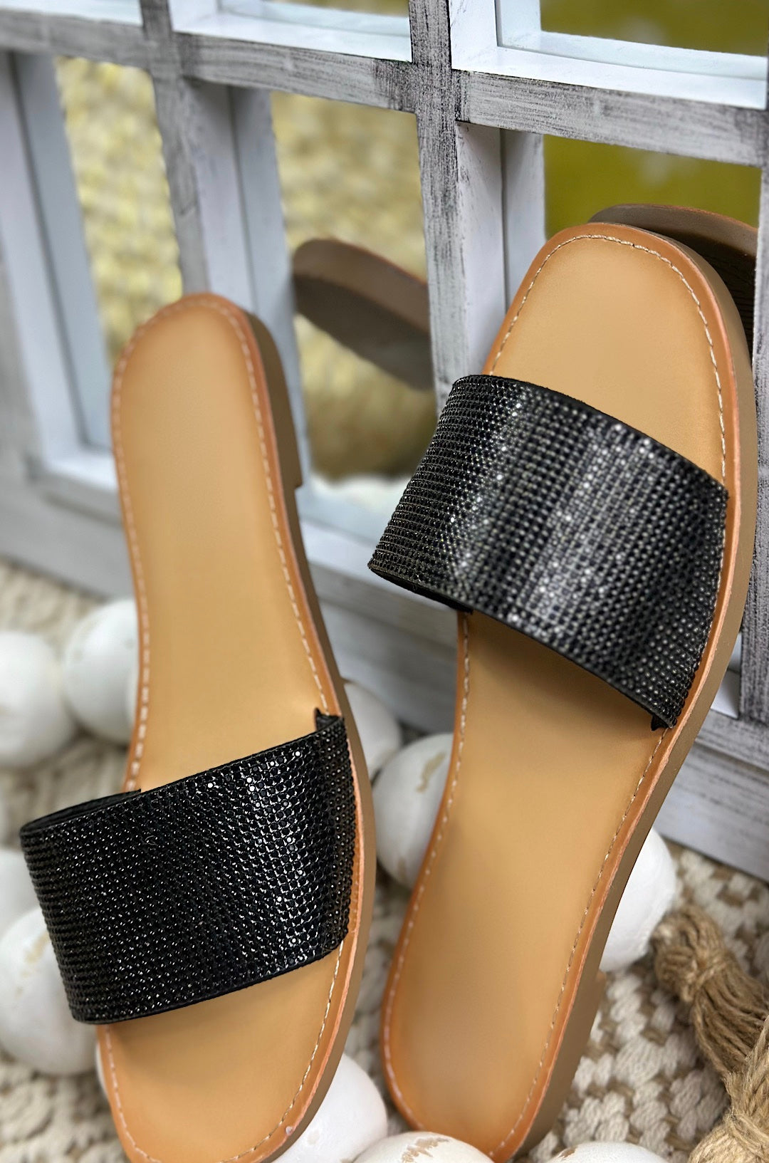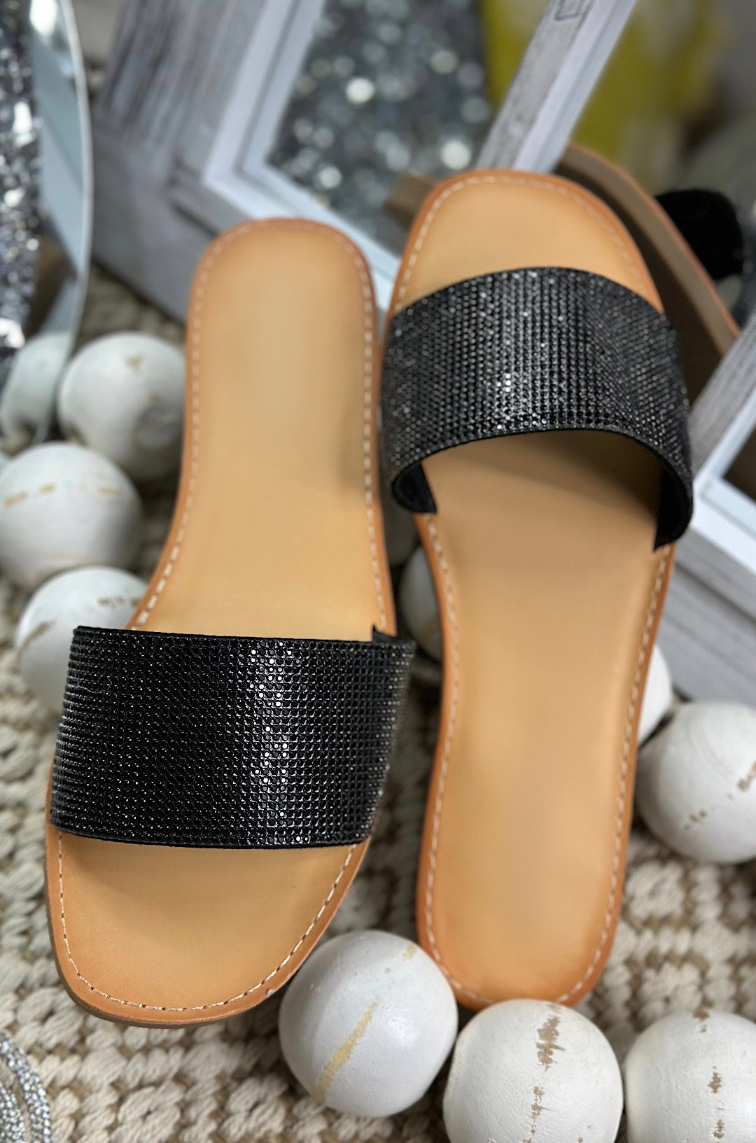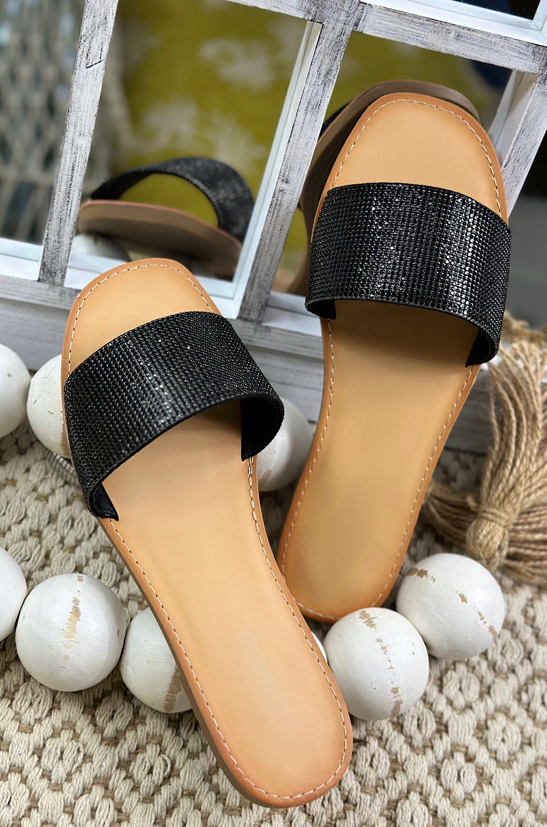 Shine bright with the Emie Rhinestone Sandals. These sleek sandals boast a comfortable flat sole and a single, chic band adorned with dazzling rhinestones. The epitome of effortless summer style, the Emie sandals elevate your look from poolside lounging to casual outings. Offering just the right amount of shimmer, these versatile sandals are a must-have addition to your warm-weather wardrobe. Whether you crave a touch of everyday sparkle or a statement piece for a special occasion, the Emie sandals are sure to become your new favorites.