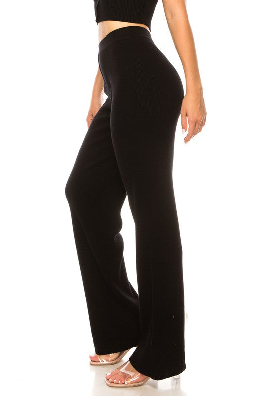 Embrace effortless style with these long flare pants. The flared silhouette creates a flattering, elongated look that flatters all body types. Made from a thick, well-knitted fabric, they offer a luxurious feel and comfortable drape.