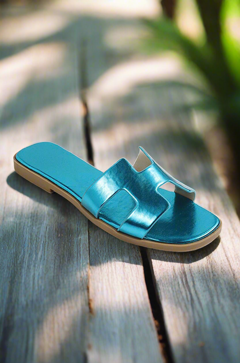 Metallic Blue Lissa Slip On Sandals