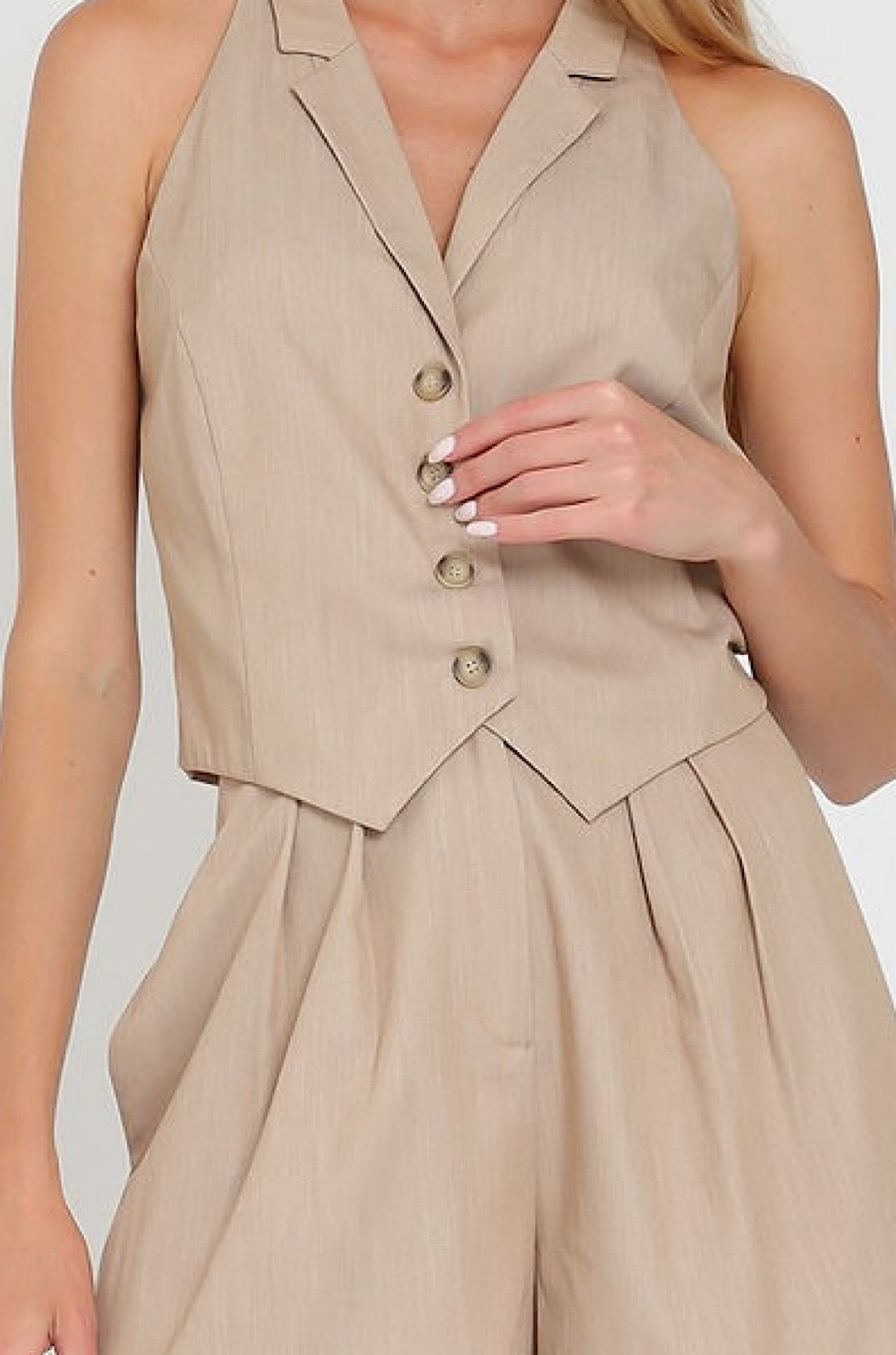 Elevate your outfit with this sophisticated lapel collar vest. Featuring a crisp button-up front that creates a clean silhouette, this vest is fully lined for both comfort and a polished look. The versatile design allows you to dress it up for the office or keep it casual for a night out. Whether crafted from luxurious wool or a breathable summer blend, this vest is sure to become a staple in your wardrobe.