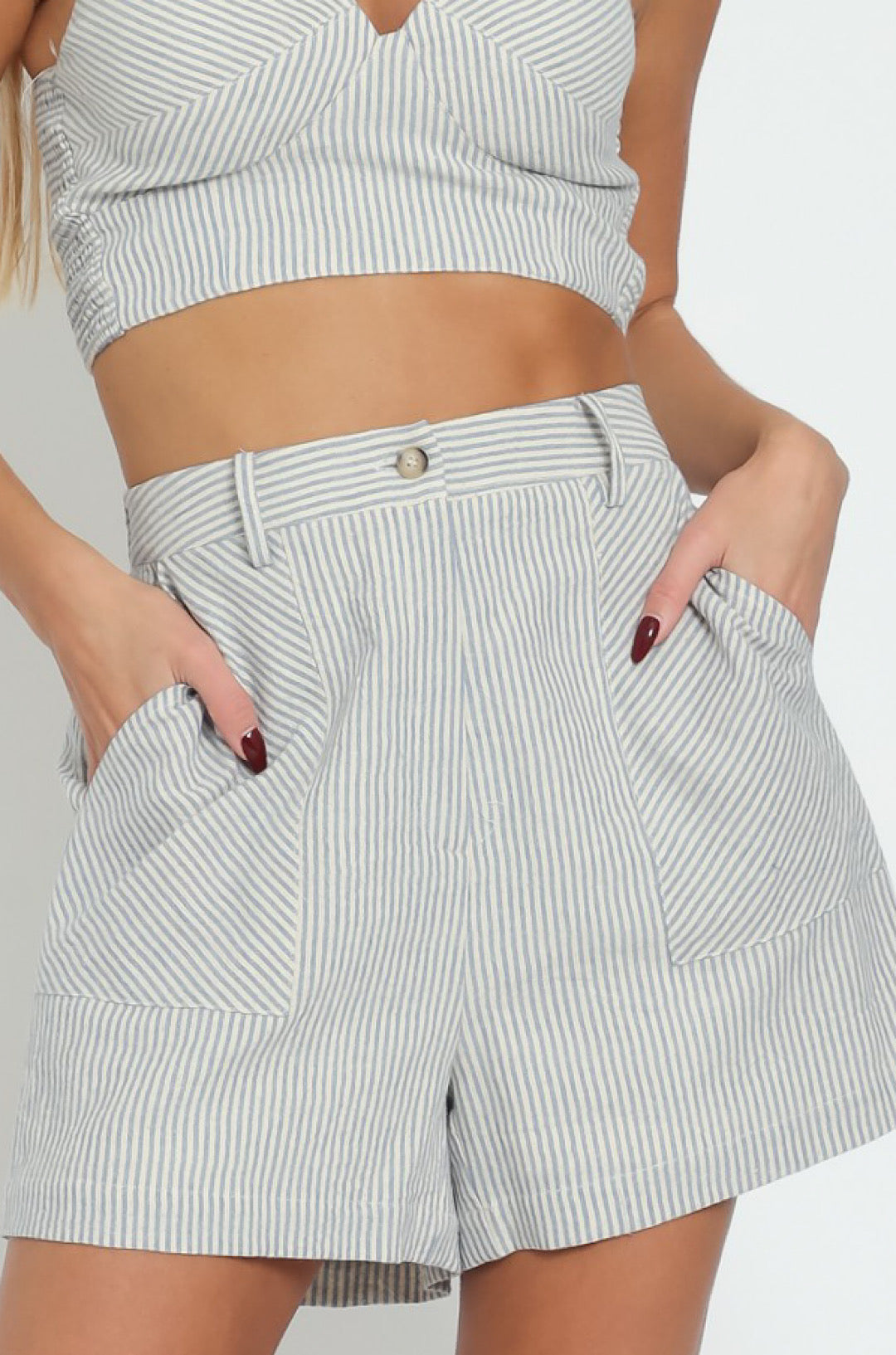 Embrace warm-weather comfort and style with our breezy Mykonos High-Waisted Shorts! These versatile shorts are perfect for any summer adventure. Featuring a flattering high-waisted fit with a comfortable elastic waistband at the back, they create a cinched waist and elongate your legs. The front zipper closure ensures a secure fit, while the handy front pocket adds a touch of functionality.