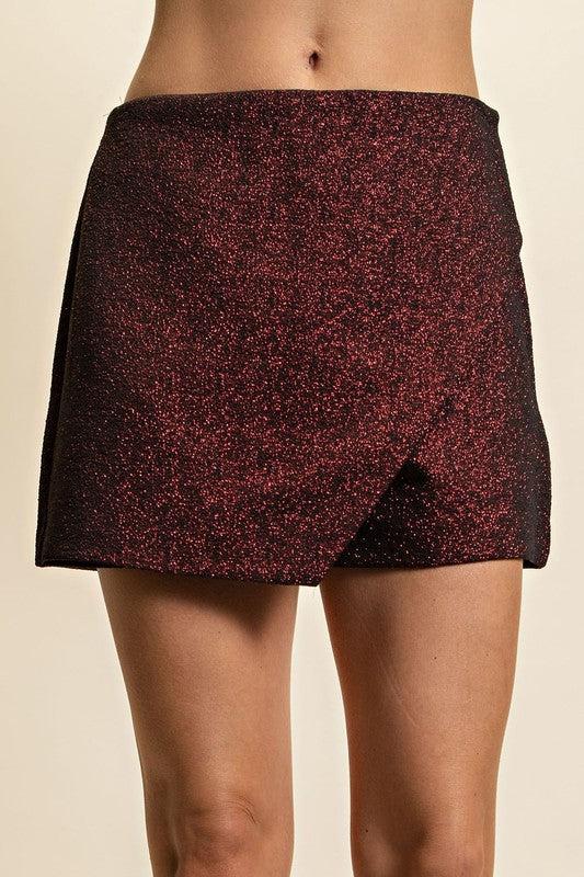 Look fabulous this holiday season with our jacquard metallic wrapped skorts.