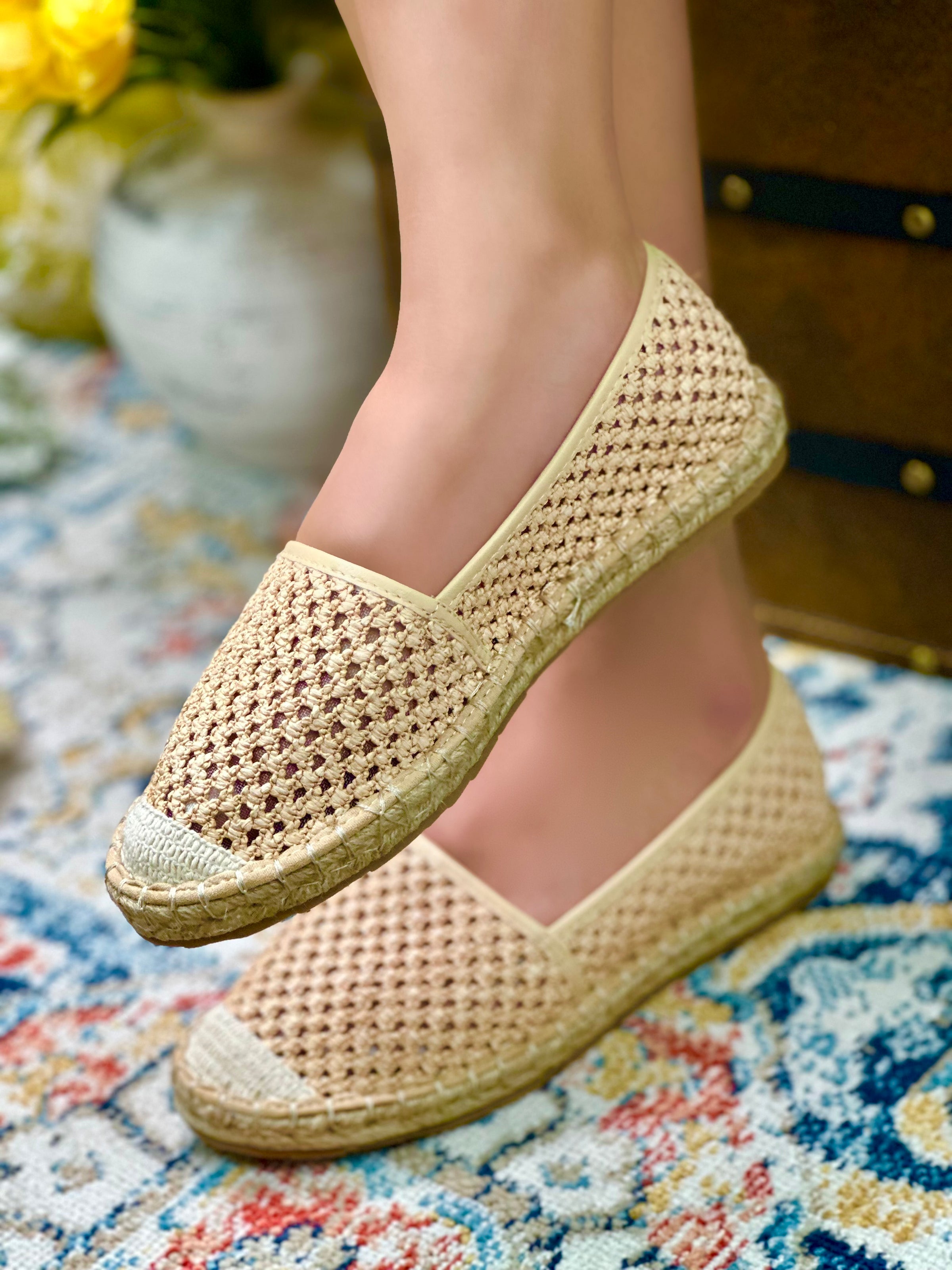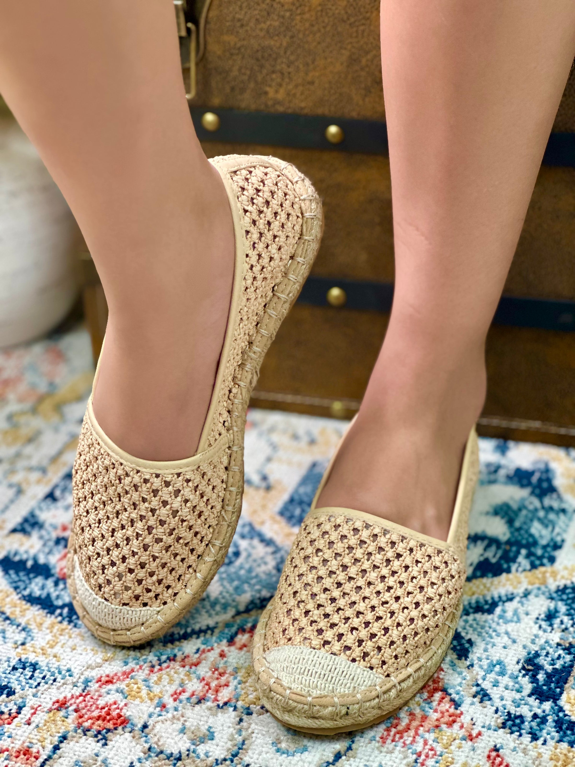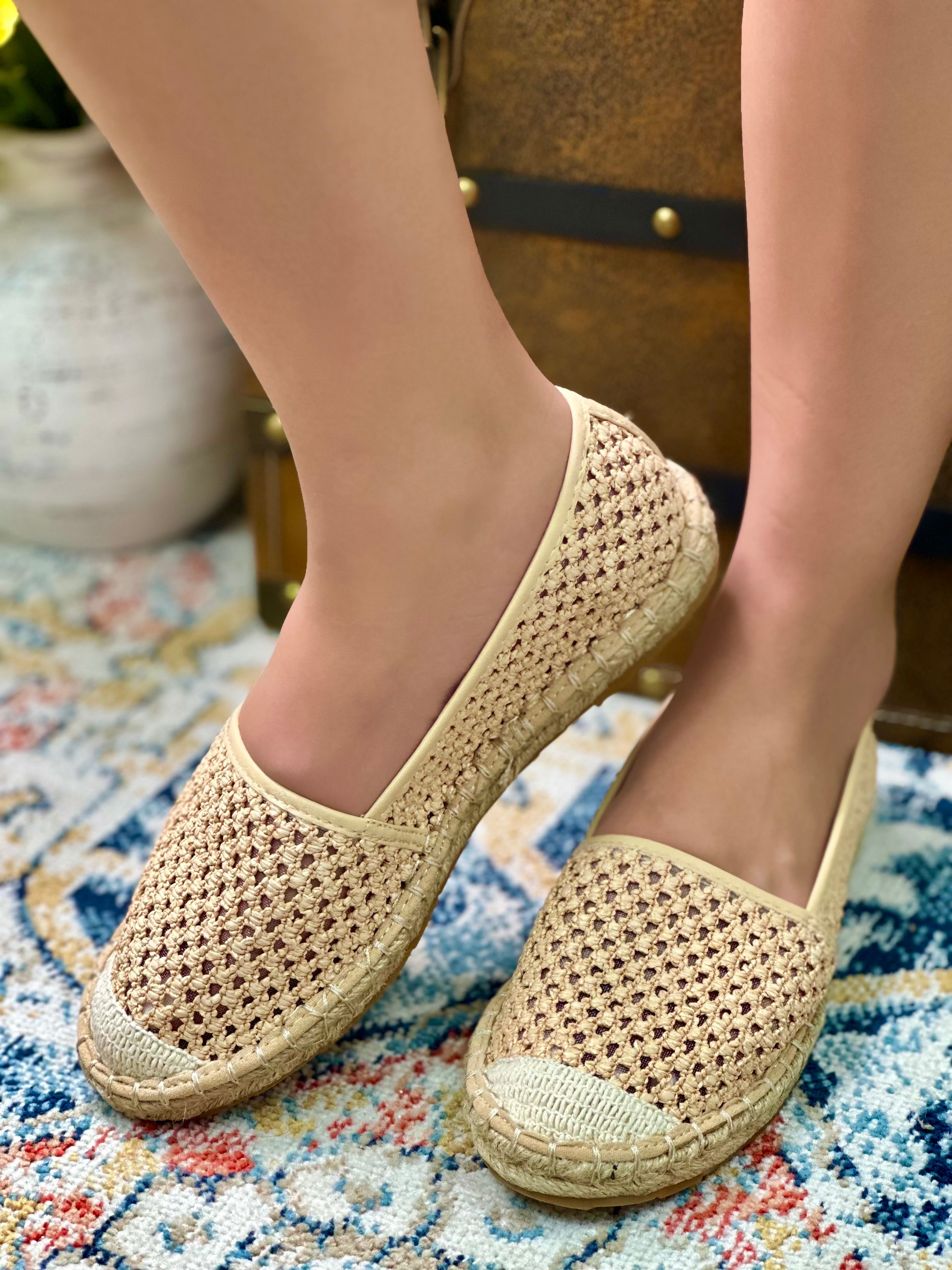 Embrace effortless summer style with our breathable round-toe raffia flats. Natural raffia fibers offer cool comfort and a touch of textural interest, perfect for keeping your feet happy on warm days. Perforations throughout the design add a stylish touch and promote breathability. These versatile flats are the ideal choice for casual outings, weekend adventures, or elevating your everyday look with a touch of laid-back luxury. With a comfortable slip-on design and a classic round toe silhouette, they pair effortlessly with everything from breezy dresses to cropped jeans.