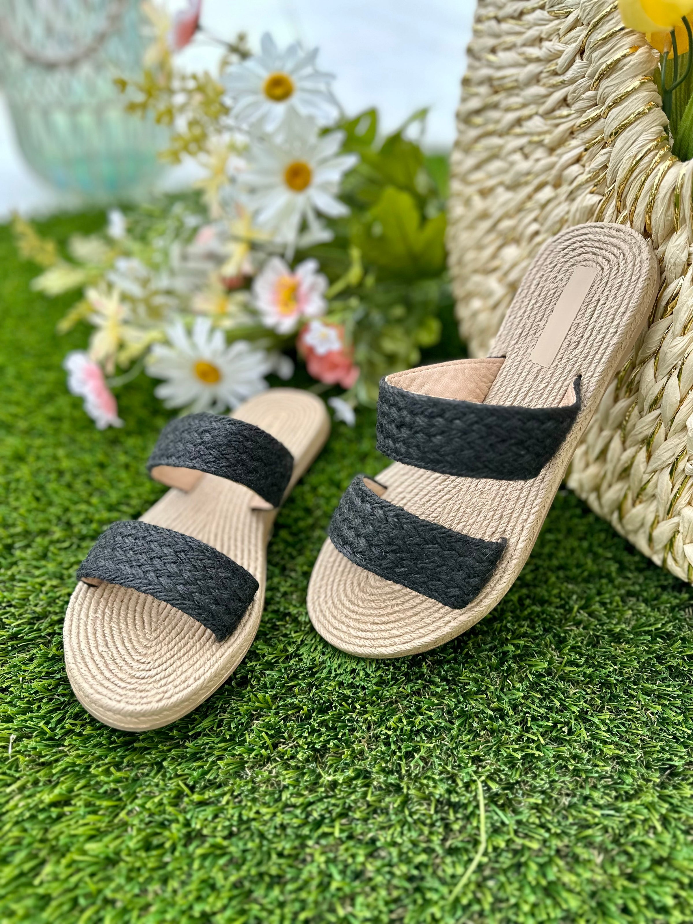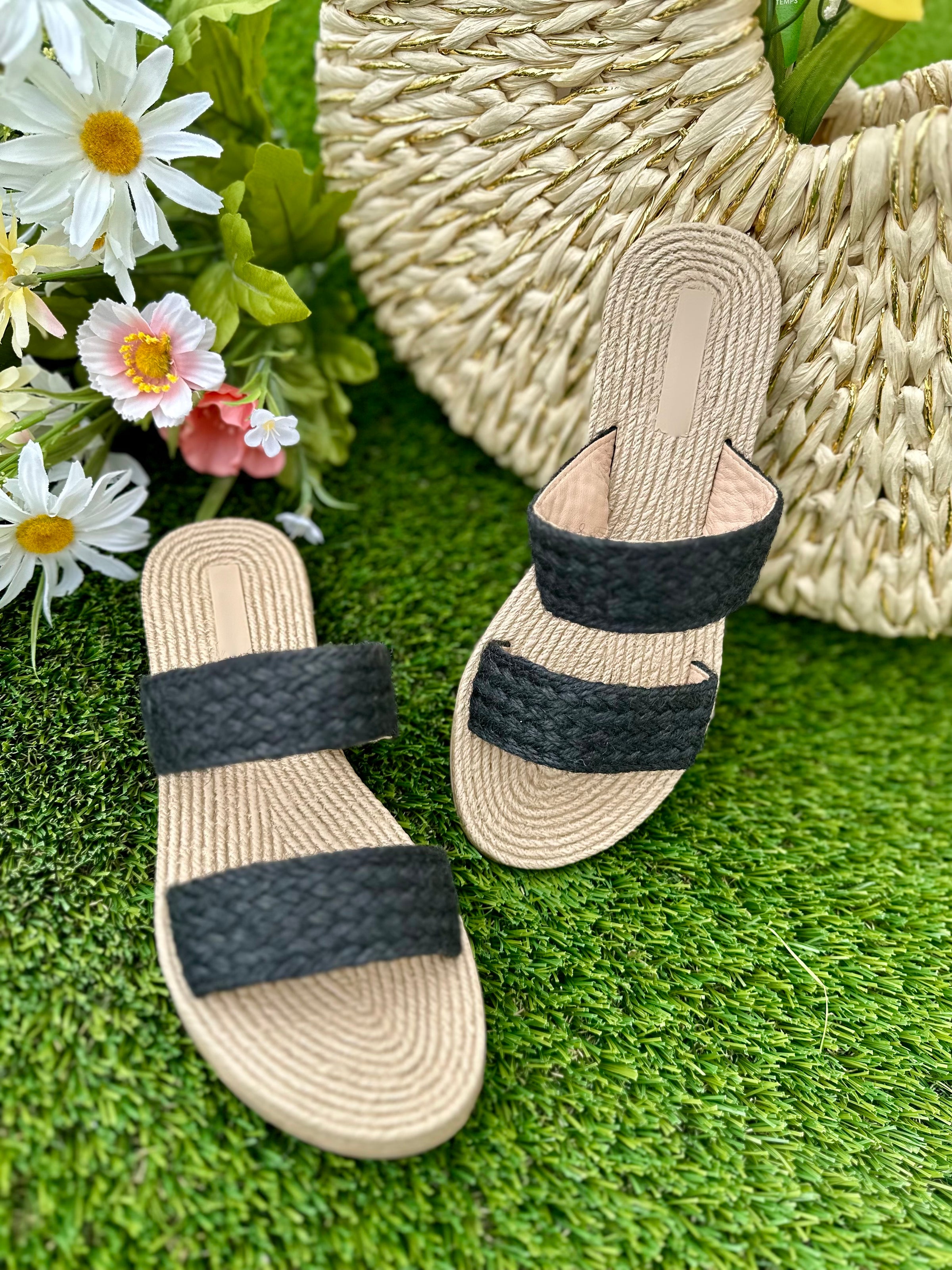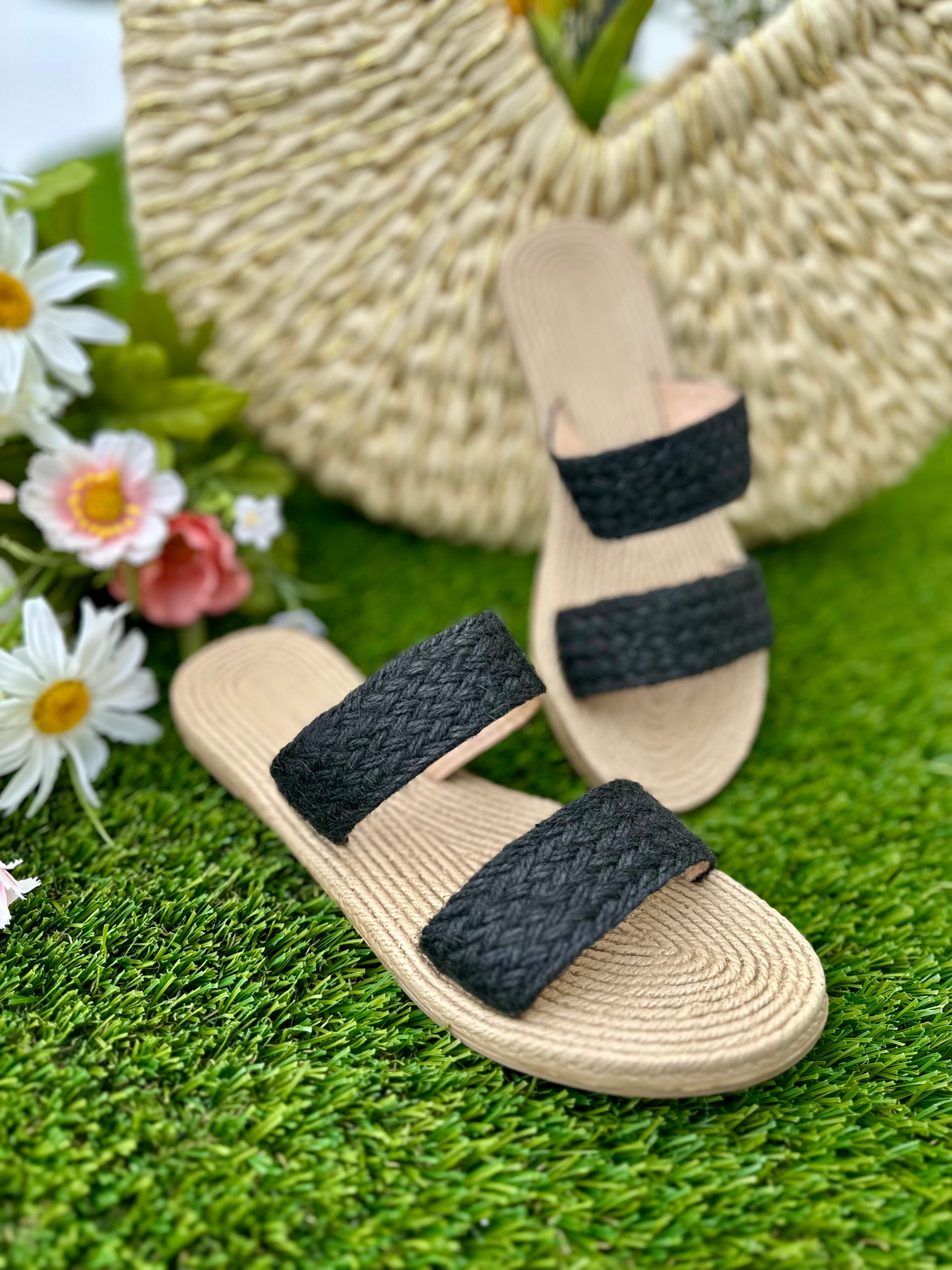 Raffia Double Strap Sandals