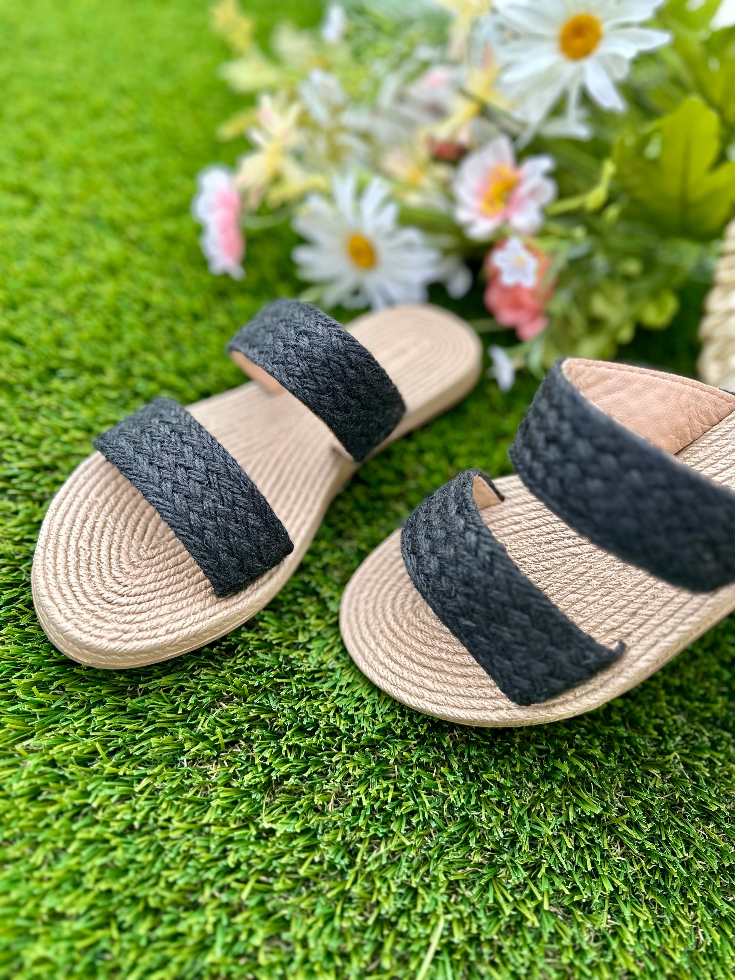 Embrace effortless spring/summer style with these chic raffia sandals. The delicate double straps provide a secure and flattering fit, while the open round toe keeps your feet cool and breezy. The lightweight foam sole ensures all-day comfort, perfect for exploring the city or relaxing by the beach. The unique woven sole adds a touch of artisanal flair, making these sandals a true statement piece. Pair them with flowing dresses, denim shorts, or even cropped trousers for a touch of bohemian chic.