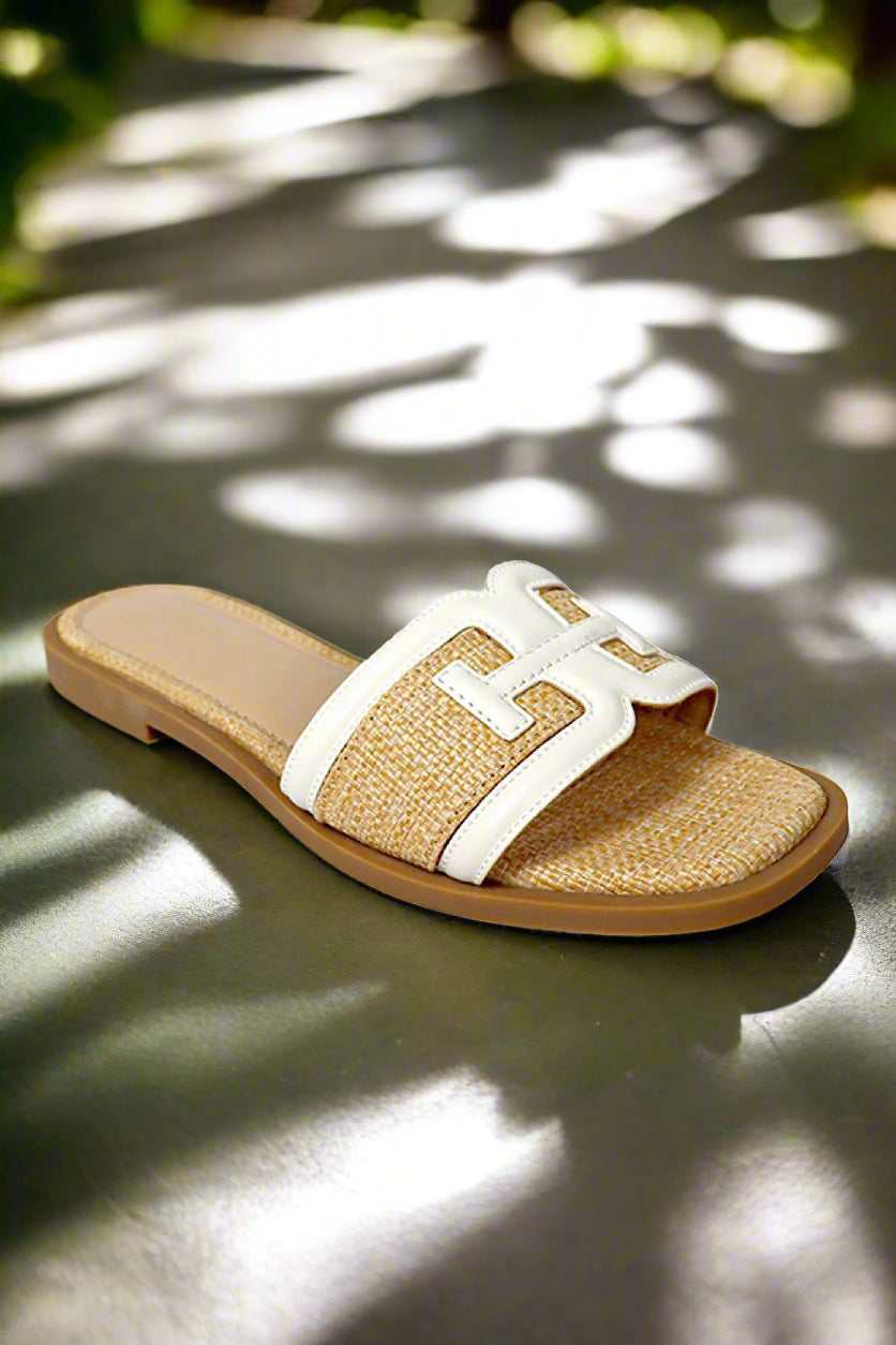 Step into summer with these raffia toe band slide sandals. The textured raffia and square toe design add a touch of natural elegance to any outfit. Lightweight and comfortable, they're perfect for all-day wear.