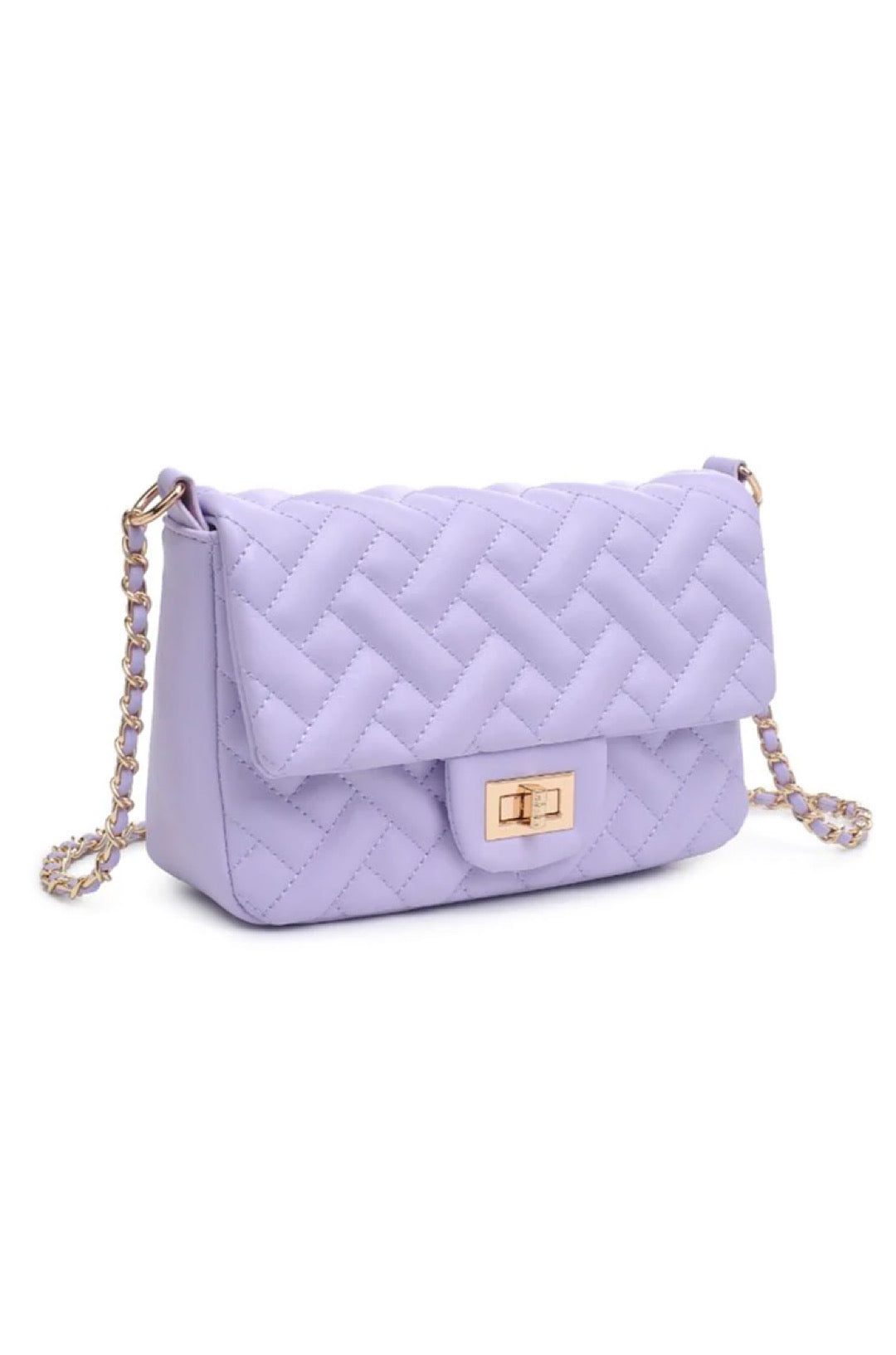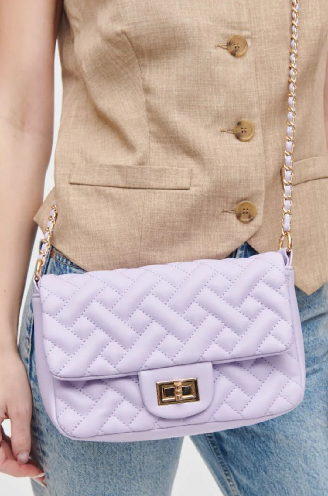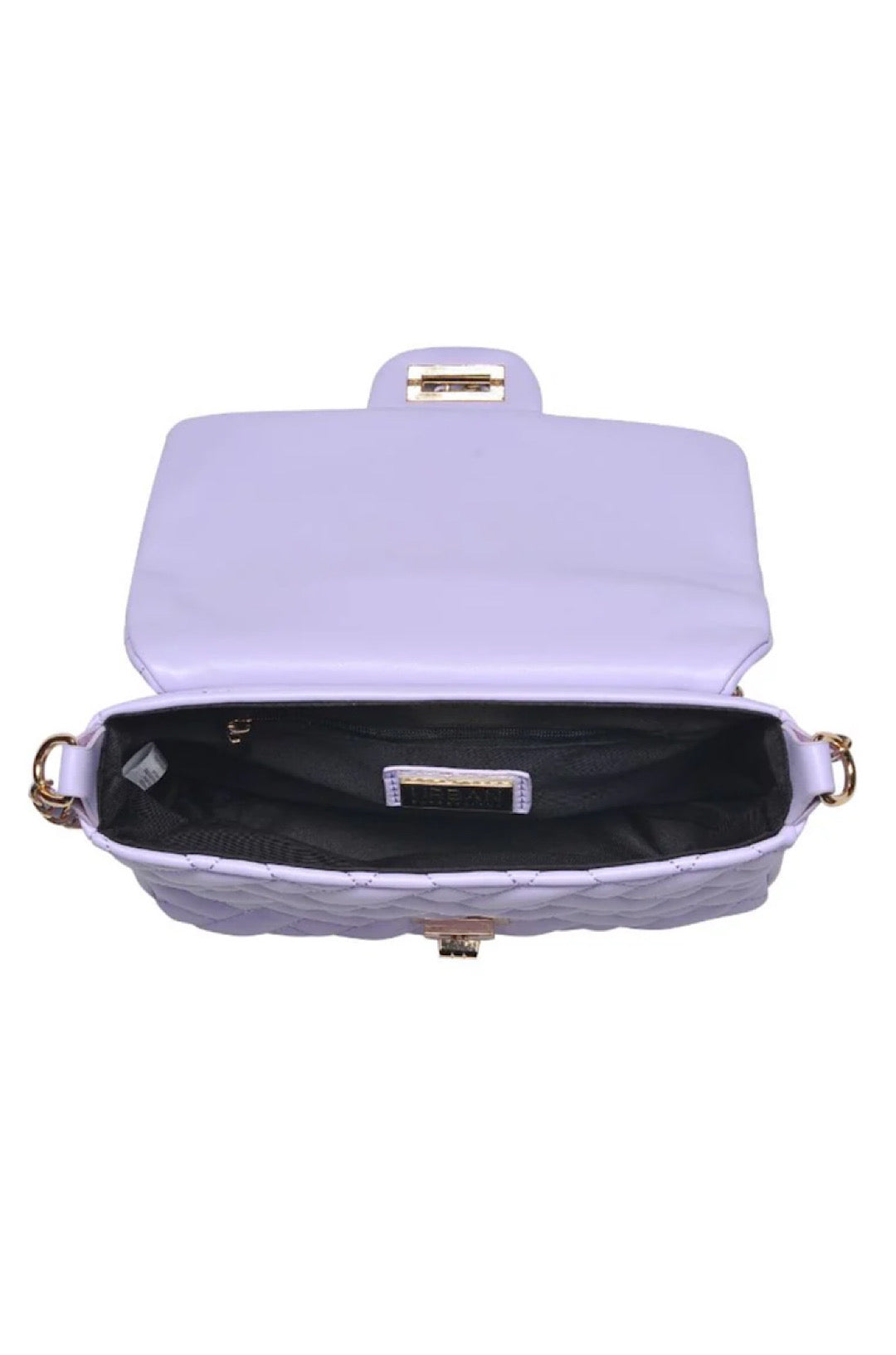 This stylish piece is crafted from vegan leather with eye-catching quilted detailing, and finished with golden hardware. With a shoulder strap, you can either remove it to carry as a chic clutch or secure it for some hands-free style. Opening the turnlock closure creates a hint of flair, while revealing the fabric lined interior complete with a zippered pocket to secure all your essentials.