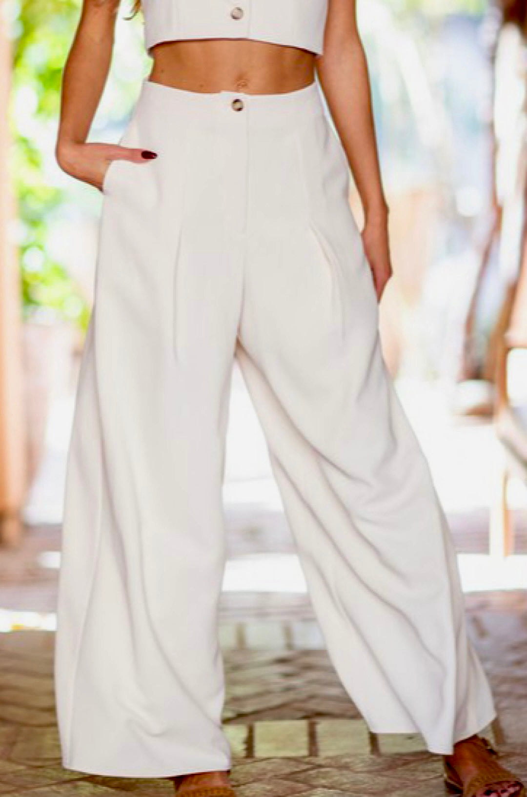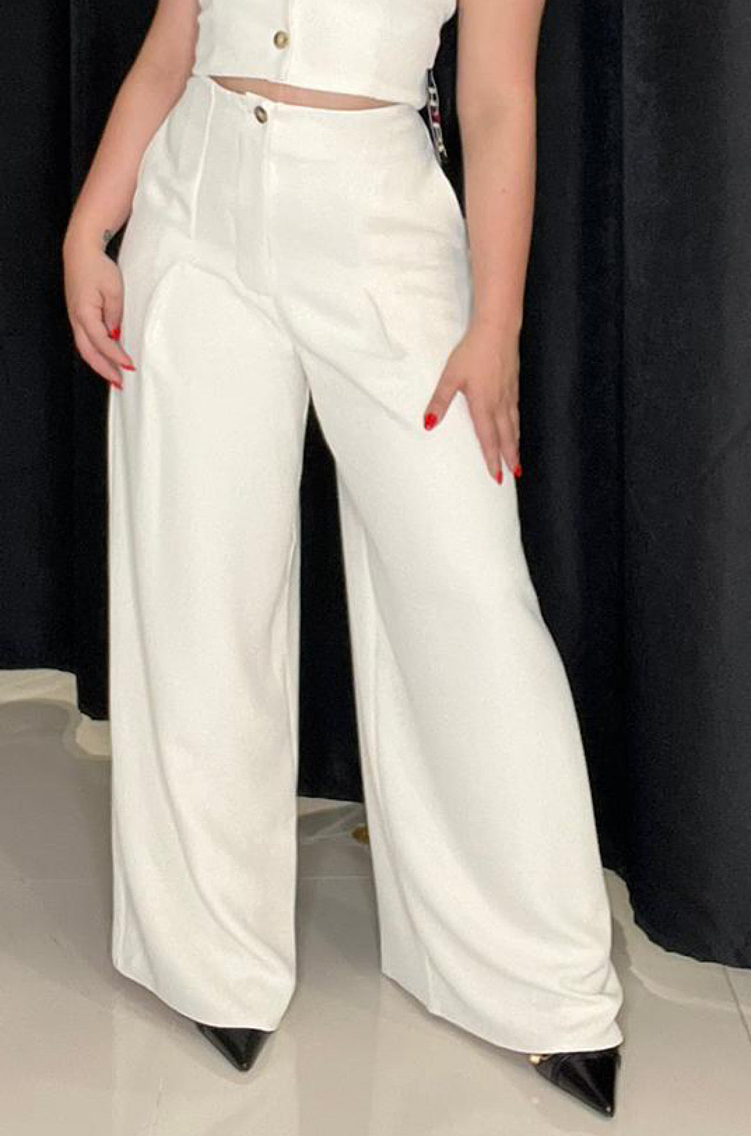 Flowy wide-leg dress pants with flattering high waist and convenient front pockets that add a touch of utility, while the relaxed fit ensures all-day comfort. Turn heads wherever you go. Perfect for work, special occasions, or everyday wear.