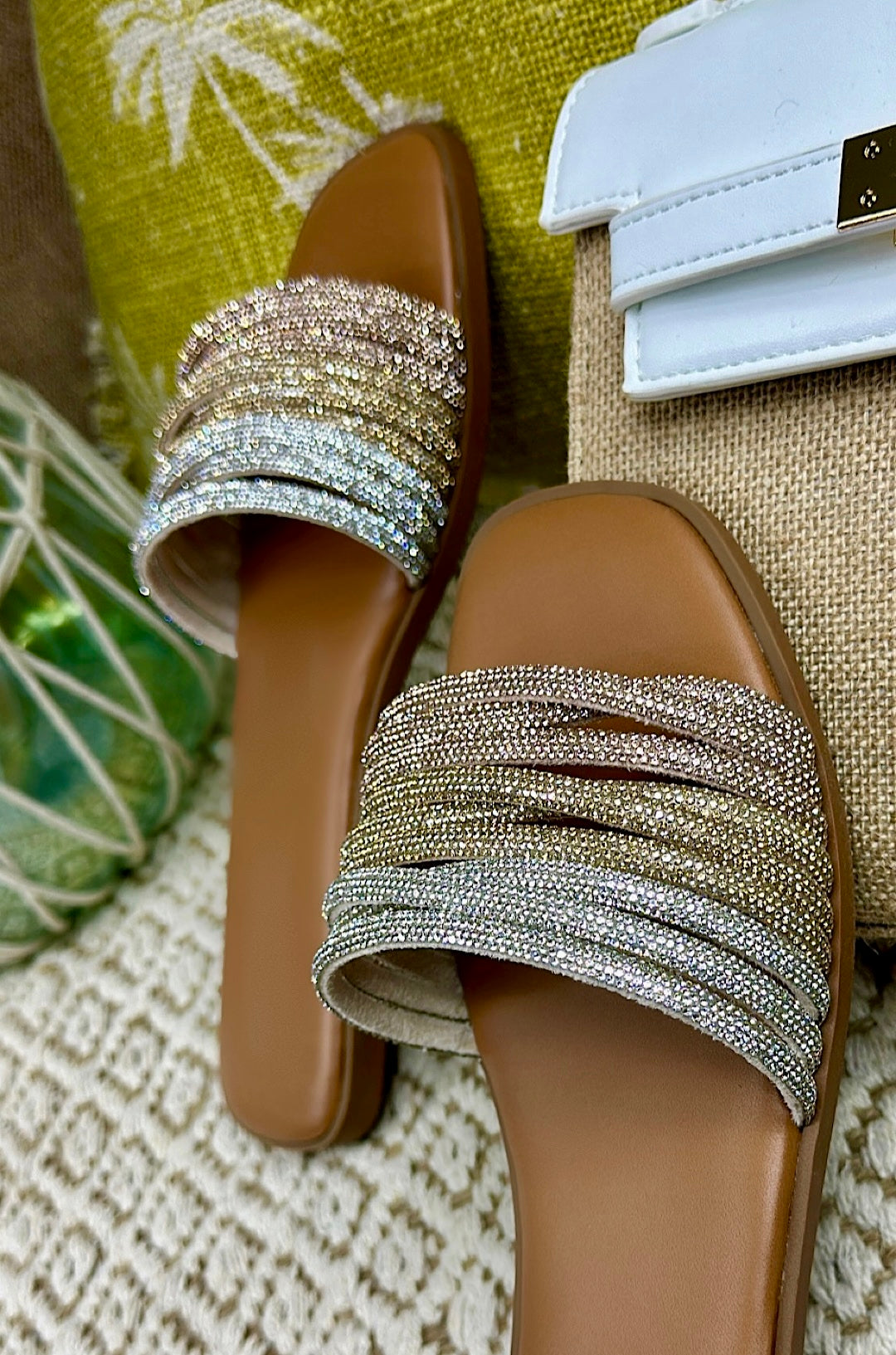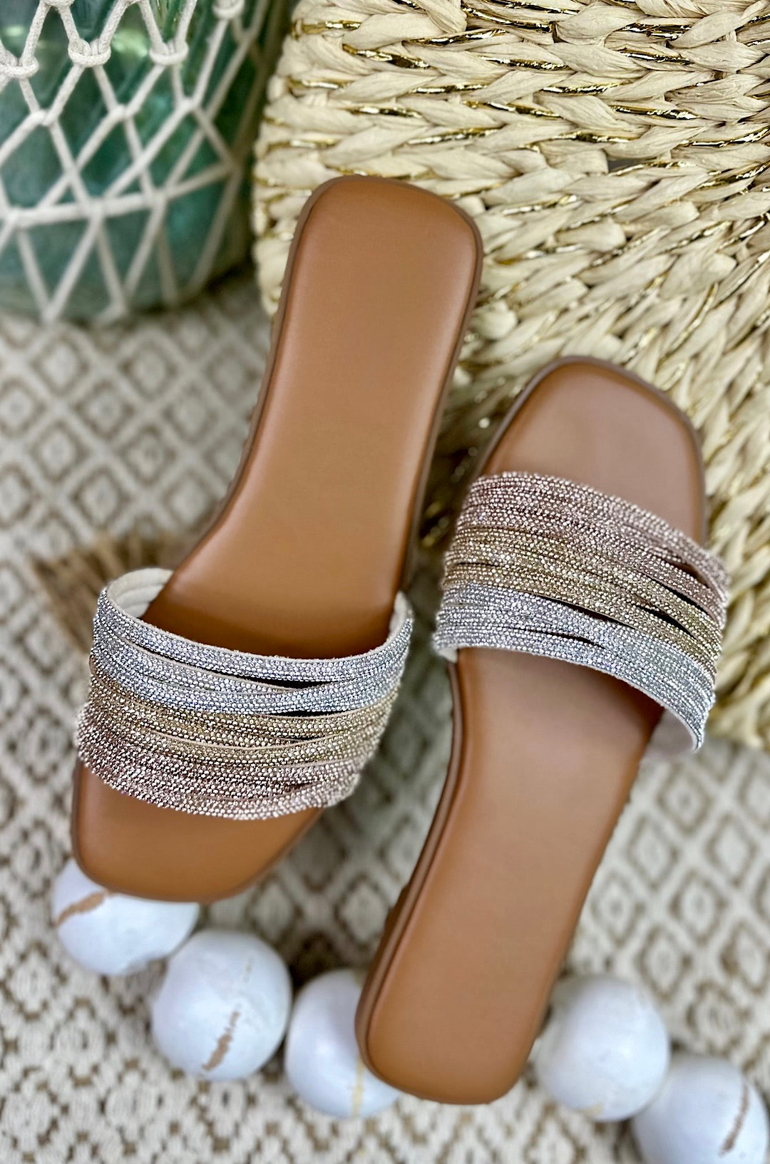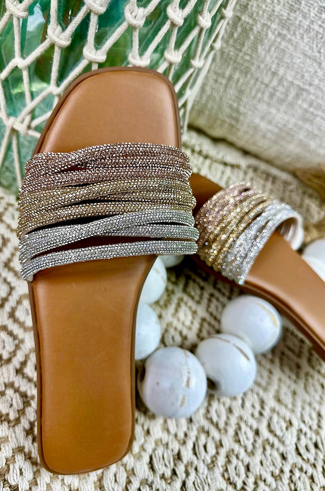 Be the star of the show with the Multi-Strap Rhinestone Sandals! Every step you take will shimmer and shine thanks to the dazzling gradient-colored rhinestones adorning the multiple straps. These sandals aren't just beautiful, they're comfortable too! The slip-on design makes them a breeze to wear, while the lightly padded footbed provides all-day comfort. Modern touches like the trendy square toe and sleek tubular straps elevate the look. So go ahead, strut your stuff in sparkling style with the Multi-Strap Rhinestone Sandals!